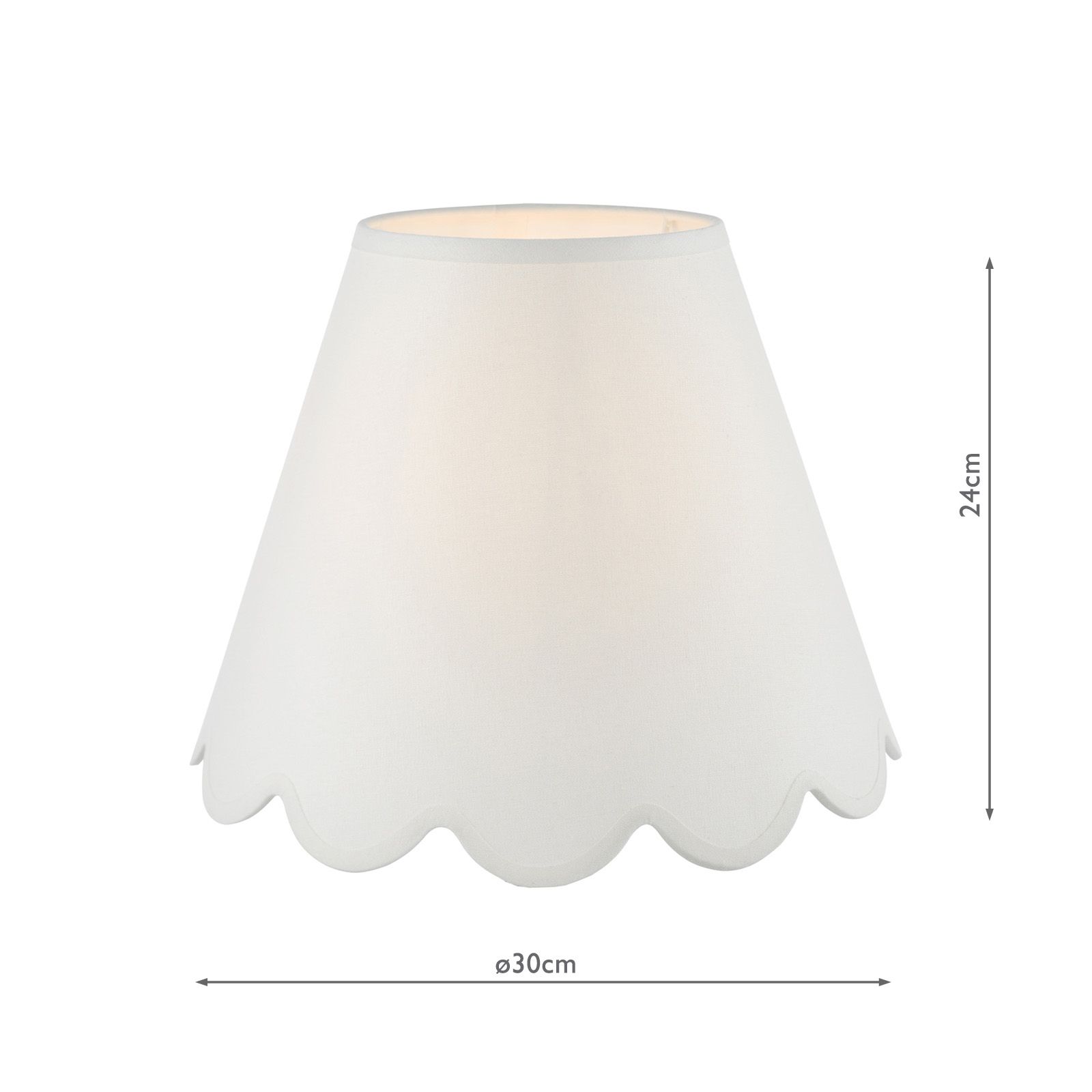 Add a touch of coastal elegance to your space with this Nerita scalloped shade from dar lighting. Crafted from ivory linen, this tapered drum shade boasts a charming scalloped edge that evokes the gentle curves of seashells. The matching taped edge provides a polished finish, making it a versatile choice for medium table lamps in any room. Part of dar lighting's Nerita range, this 30cm shade is available in various sizes to suit your needs. Whether you're aiming for a beachy vibe or simply want to soften your lighting, this shade diffuses light beautifully, creating a warm and inviting atmosphere in your home.