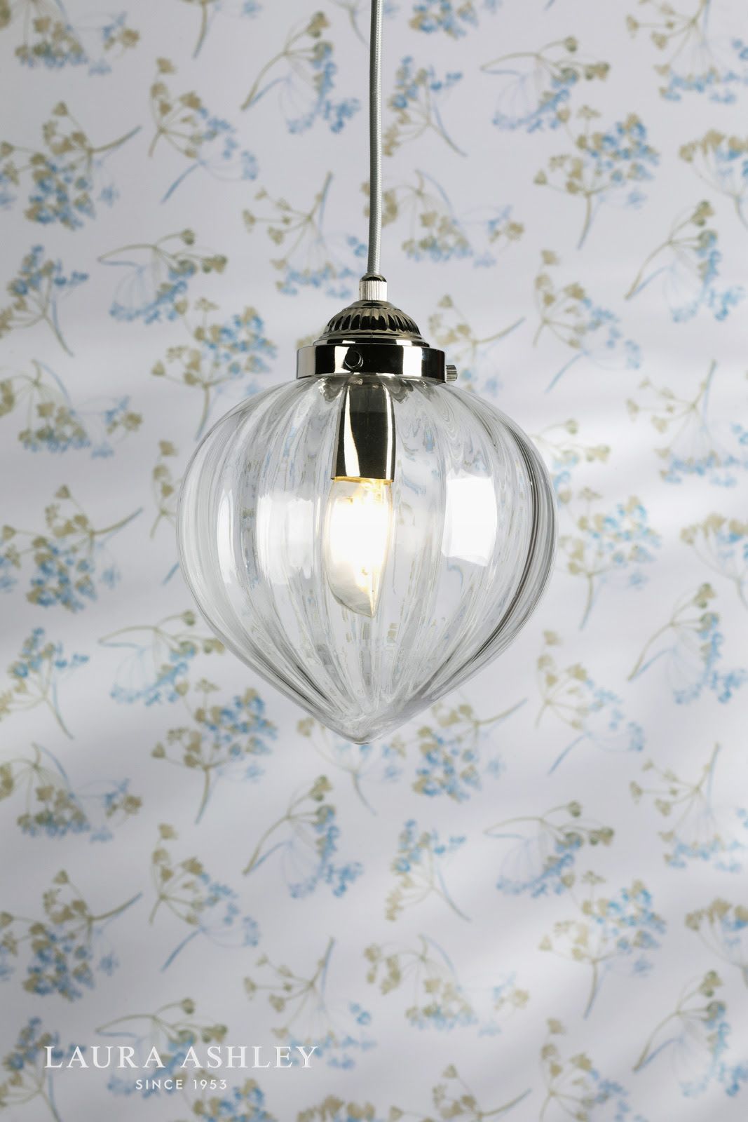 Laura Ashley Whitham Pendant Polished Nickel and Ribbed Glass