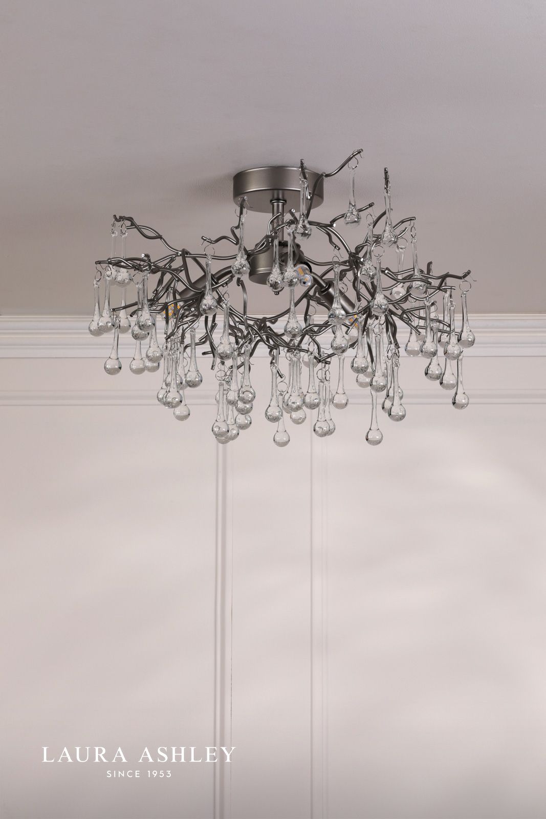 Laura Ashley Willow 3 Light Semi-Flush Satin Pewter and Crystal